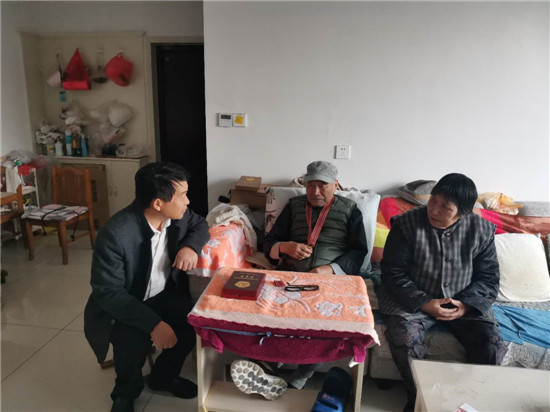 圖⑦市開發區退役軍人服務中心工作人員,趕赴濮陽市為在此居住的我市抗美援朝老戰士送上紀念章