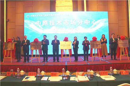 會(huì)上,中原技術(shù)市場石家莊、合肥、洛陽、太原、南京分中心分別揭牌。