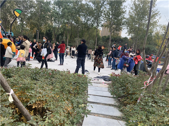 11月1日,記者來到市區(qū)人民路(康莊路黃河路路段)趙王河公園新建設(shè)的兒童樂園內(nèi),一眼望去,人頭攢動,人山人海,雖然該處建設(shè)仍未完工,但是抵擋不了市民游玩的熱情。