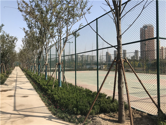 在趙王河康莊路橋附近,不同種類的綠植、花木郁郁蔥蔥,這里還新建了一處供市民健身的運動廣場,有籃球場、足球場、羽毛球場等,可滿足市民的不同需求。“這里建設得很好,運動和美景相融合,太健康了!就算是不打球,每天早晨、晚上來跑跑步,也會有個好心情?!笔忻駥O先生笑著說。