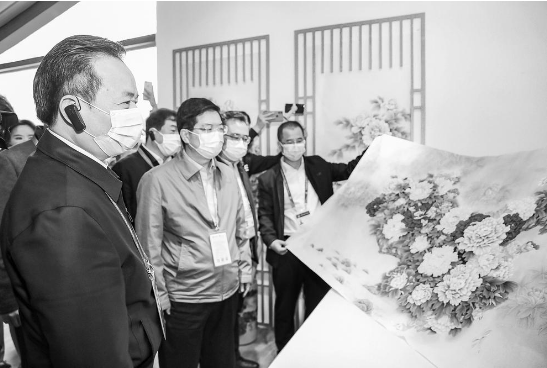 11月5日至10日,第三屆中國國際進口博覽會在上海國家會展中心舉行,巨野工筆牡丹畫在廣大海內(nèi)外觀眾面前亮相。據(jù)了解,這是繼2018年巨幅工筆牡丹畫《花開盛世》亮相上合組織青島峰會,2018年、2019年巨幅工筆牡丹畫《錦繡春光》走進進博會之后,巨野工筆牡丹畫再次在重大國際場合大放異彩。