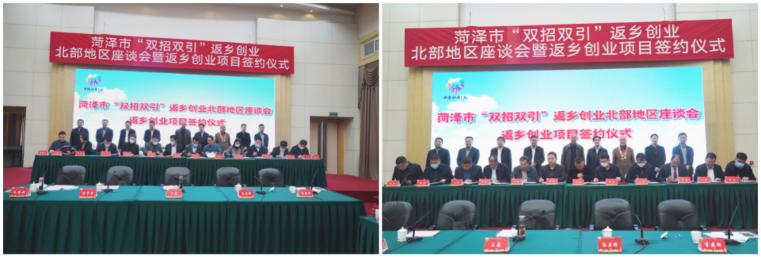 會(huì)上播放了菏澤市返鄉(xiāng)創(chuàng)業(yè)專(zhuān)題片并進(jìn)行了項(xiàng)目集中簽約儀式,共簽約項(xiàng)目17個(gè),總投資額達(dá)到67.96億元。