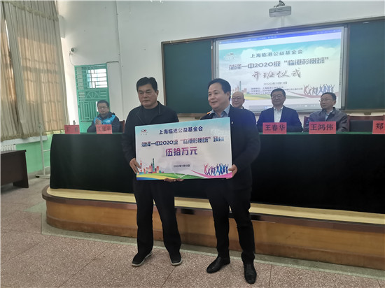 在成立儀式上,臨港創(chuàng)新管理學(xué)院院長(zhǎng)王春華向菏澤一中副校長(zhǎng)王翠平授予2020級(jí)“臨港杉樹(shù)班”牌,向班主任授予2020級(jí)“臨港杉樹(shù)班”旗幟。上海山東商會(huì)副會(huì)長(zhǎng)鄭憲國(guó)向菏澤一中校長(zhǎng)李志獻(xiàn)贈(zèng)送了50萬(wàn)元金額的支票(上圖),上海臨港公益基金會(huì)理事長(zhǎng)王鴻偉向捐贈(zèng)人上海山東商會(huì)副會(huì)長(zhǎng)鄭憲國(guó)贈(zèng)送了捐贈(zèng)證書(shū)。上海臨港公益基金會(huì)會(huì)長(zhǎng)邵正平、菏澤市僑聯(lián)黨組書(shū)記滑成奎、菏澤一中校長(zhǎng)李志獻(xiàn)見(jiàn)證了臨港杉樹(shù)班的成立。