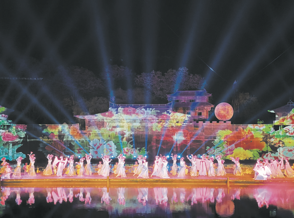 大型水上實景劇《盛世芳華·牡丹頌》,用一場前所未有的視覺盛宴,讓到會賓朋觸摸菏澤的文化脈搏。