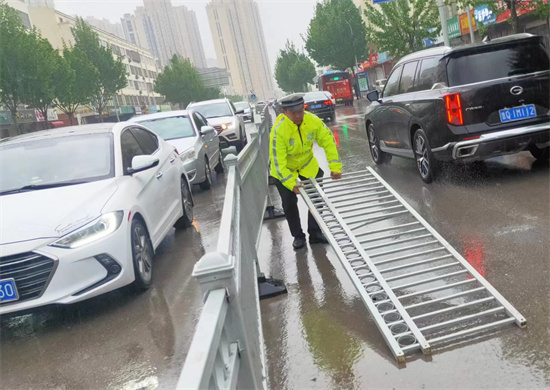 連日來的降雨,致使城區(qū)道路濕滑、能見度低,車輛行駛緩慢,給群眾出行帶來諸多不便。為確保轄區(qū)道路安全暢通,近日,牡丹區(qū)交警大隊迅速啟動惡劣天氣應急預案,及時調整警力部署,強化應急備勤,對城區(qū)易堵路段、國省道及縣鄉(xiāng)道復雜路段展開交通疏導,全力為群眾安全出行護航。圖為執(zhí)勤交警正在城區(qū)道路上維修隔離欄。