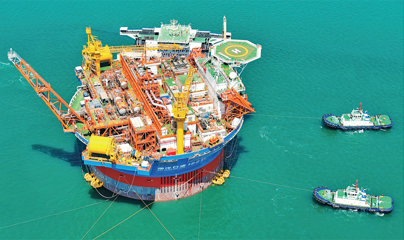 “海葵一號”,是亞洲首艘圓筒型浮式生產儲卸油裝置。該裝置集原油生產、存儲、外輸等功能于一體,被網友們昵稱為“超級能源碗”,也是完全由我國自主設計建造的海上油氣加工廠。圖為2024年5月12日,“海葵一號”從中國海油青島國際化高端裝備制造基地離港啟運。 人民圖片 張進剛/攝