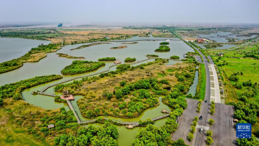 這是5月13日拍攝的山東黃河三角洲國家級自然保護區景色(無人機照片)。新華社記者 郭緒雷 攝