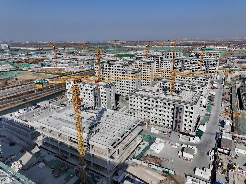 2021年是雄安新區大規模開發建設向縱深發展的關鍵一年。容東片區是雄安新區開發建設的先行區域,擔負著承接北京非首都功能疏解和安置回遷群眾的重要任務。這是2021年4月8日拍攝的雄安新區容東片區安置房項目建設現場(無人機照片)。2021年10月,容東第一批安置房開始交付。