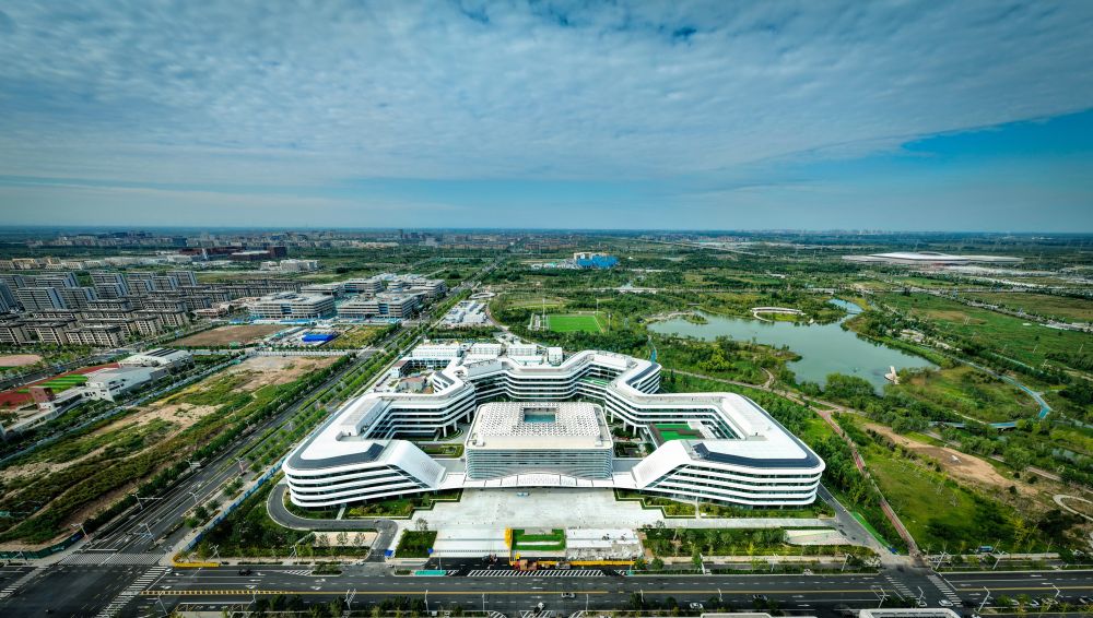 2023年6月30日,中共中央政治局召開會議,審議《關于支持高標準高質量建設雄安新區若干政策措施的意見》。此后,一攬子特殊支持政策陸續落地雄安新區。2023年10月16日,雄安宣武醫院開診。首都醫科大學宣武醫院派來管理團隊及骨干醫生,重點服務疏解人員和新區群眾,并輻射京津冀地區。這是2023年9月30日拍攝的雄安宣武醫院(無人機照片)。