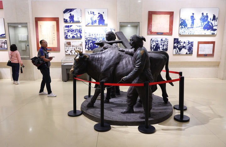 2025年10月8日,游客在河北平山縣西柏坡紀念館參觀。新華社發(梁子棟攝)