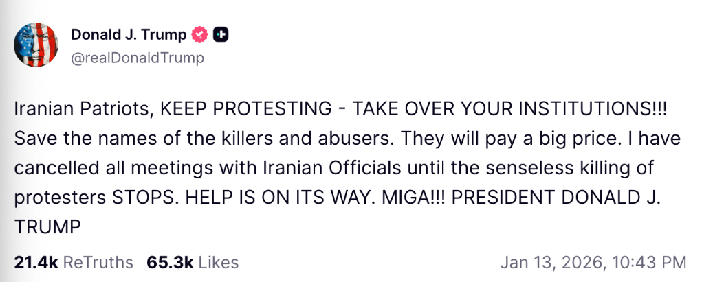 此前,特朗普曾表示,伊朗方面已與美國政府官員接觸并提議進行談判,“會議正在安排中”。同時,美國正在考慮應對伊朗局勢的一系列措施,包括軍事行動等“一些非常強硬的選項”。但根據特朗普的最新表態,這些會面均已取消。