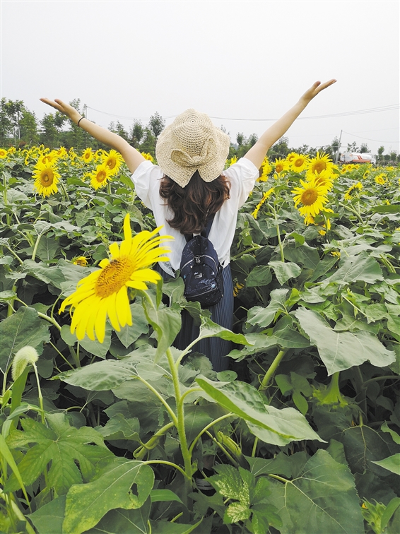 趙巍說,面對這片花海,不禁詩情滿懷。那一朵朵盛開的葵花,葉如蒲扇,花若金盤,高矮相間,茁壯挺拔,似乎在不停地追尋著陽光。
