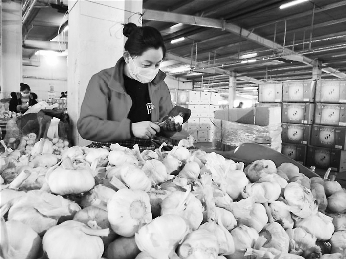 ?日前,成武縣大田集鎮謝樓村一村民正在隆興公司做大蒜精細加工。大田集鎮是成武縣的大蒜主產區,每年種植面積達8萬多畝。為拉長大蒜產業鏈條,大田集鎮黨委政府采取可行措施,積極扶持上馬大蒜精細加工企業,目前該鎮大蒜精細加工和大蒜深加工企業達22O多家,全鎮約有4萬多人圍著大蒜精細加工工作,每人年收入達到5萬元以上。
