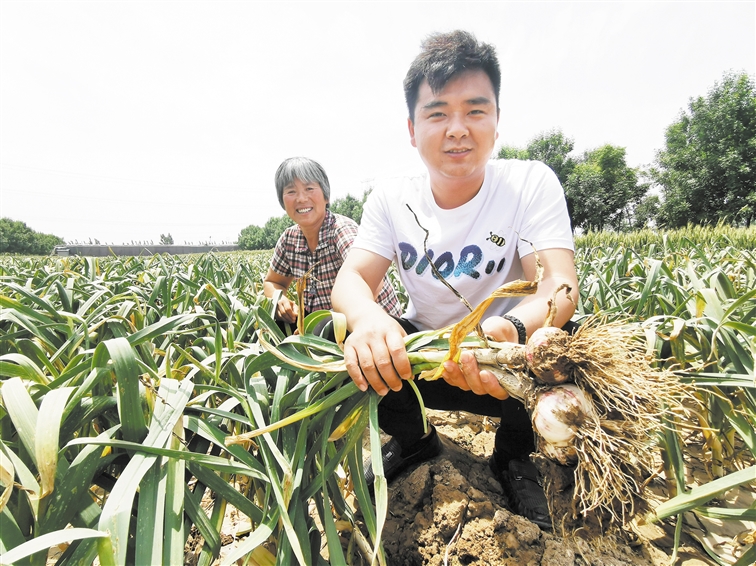 ▼5月24日,牡丹區都司鎮朱屯行政村省派第一書記劉珂和村民一起采收紫皮大蒜。自省派第一書記駐村以來,該村立足本地優勢,采用“黨支部+合作社+農戶”的模式,積極調整產業結構,發展大蒜、西瓜等特色種植,促進農民穩步增收致富。