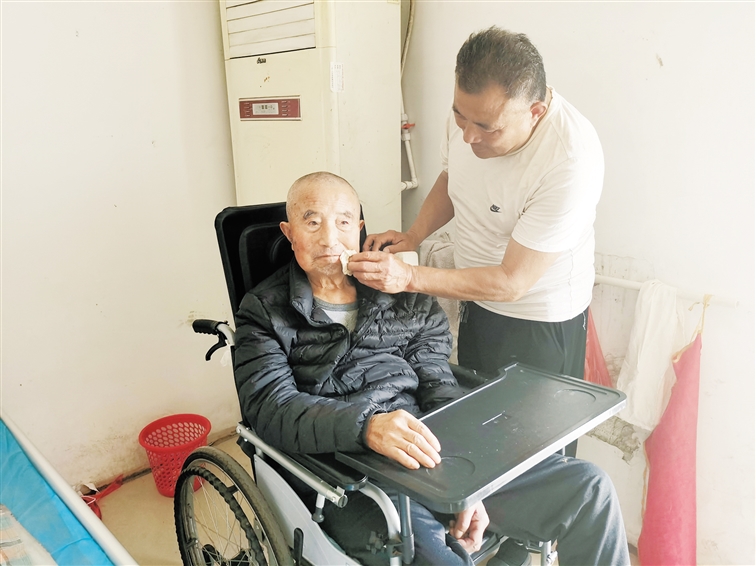 “岳父40多歲的時候老伴就病逝了,他獨自拉扯6個孩子,很不容易。”為了照顧好老人,孫學合專門收拾出一間屋子,供老人居住。每天早晨起床后,他先為岳父擦洗干凈,再將被褥拿到室外晾曬,防止產生異味,讓老人睡得舒服。吃飯時,怕卡著、噎著,他定時定量地將稀飯、蛋羹、奶粉等營養又容易消化的食物,一勺一勺喂到老人嘴里。天氣晴朗沒風的時候,孫學合會推著老人在街上轉一轉,曬曬太陽,呼吸新鮮空氣,一點一滴,周到細致,關愛有加。在他的精心照顧下,老人衣著整潔,精神飽滿。