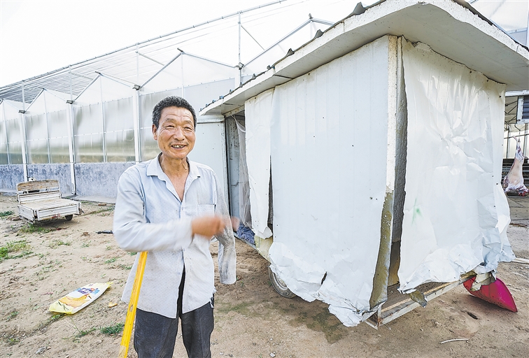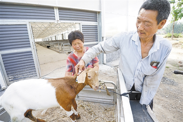 6月10日,氣溫高達37攝氏度。記者見到單縣楊樓鎮大姜莊村58歲的養羊大戶姜守紅時,他正在新竣工的養殖大棚內給小羊羔喂奶。談起他的養羊創業史,左手殘疾的姜守紅十分激動。