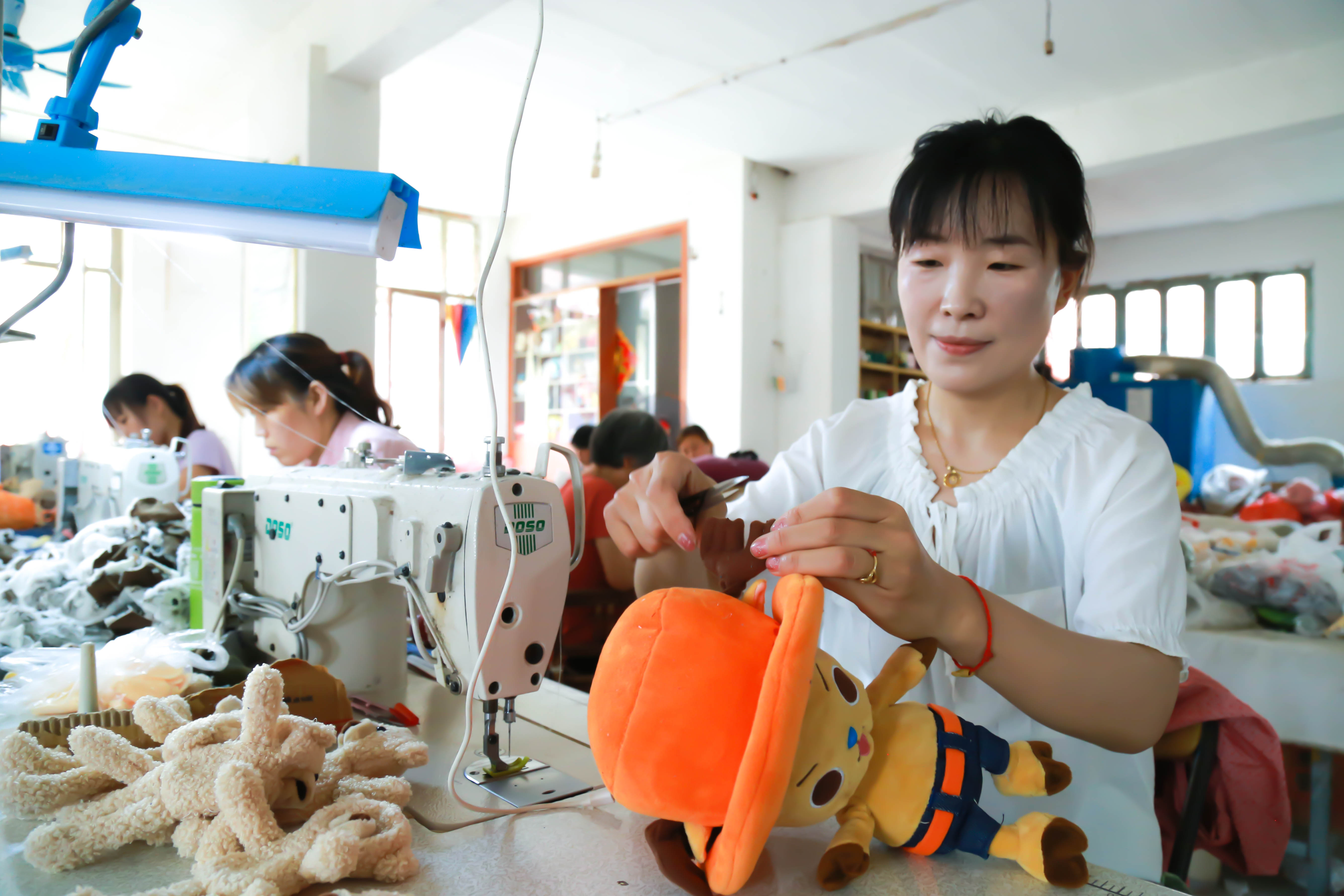 有了扶貧車間,村里的留守女人也找到了就近上崗、靈活增收的新渠道。因此,“巾幗扶貧車間”也走上了快速發(fā)展的道路;產品的產量和銷量大幅提升,年營業(yè)額200余萬,每天能生產6000多件布娃娃、布飾品等布制品,既銷售國內也出口俄羅斯、美國等。