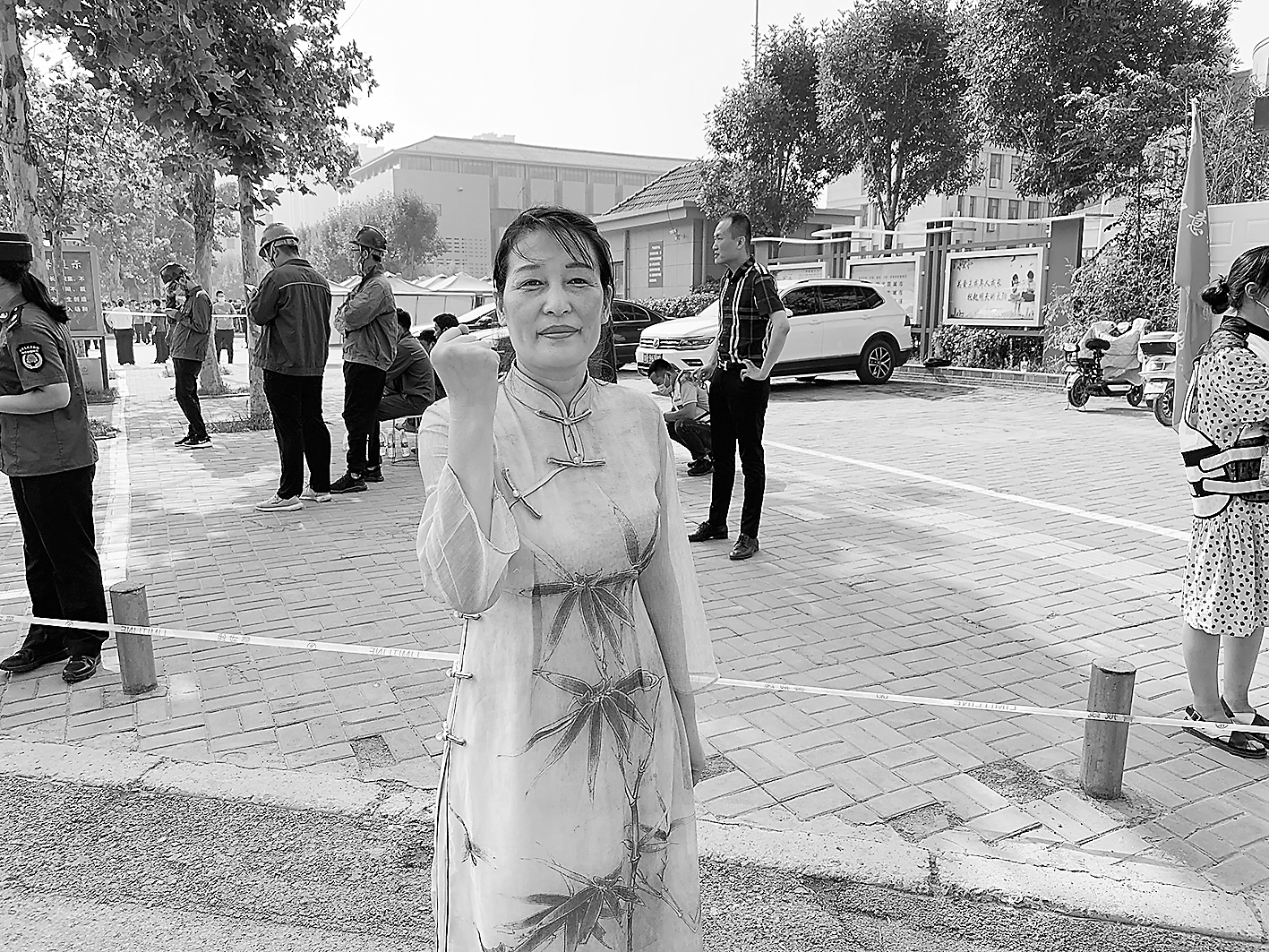 7月8日下午,在牡丹區二十一中教育集團長江路中學門口,吳艷華飽含深情地目送女兒走入考點,然后短暫停留便默默地離開了。