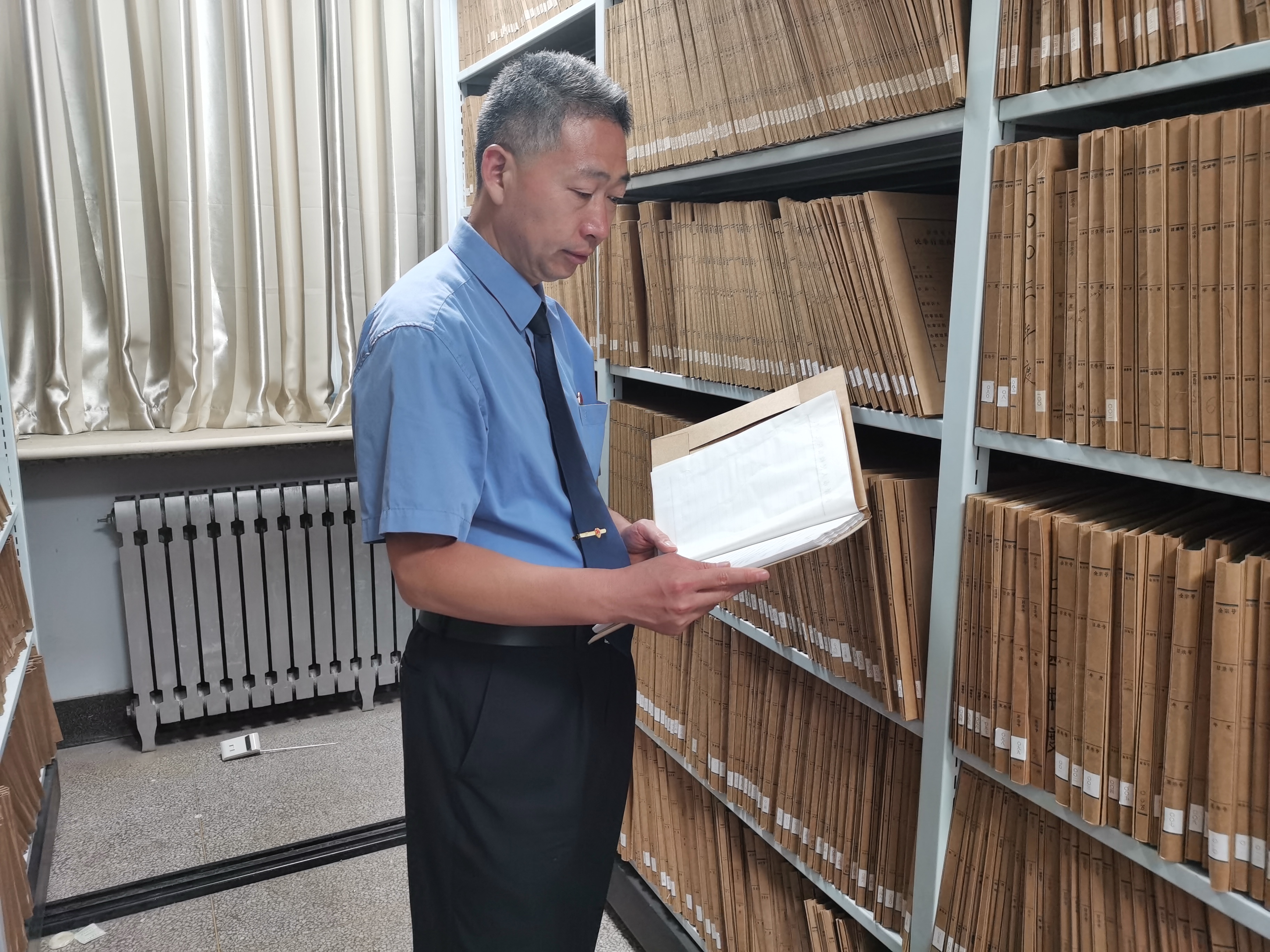 范世成在檔案室查閱卷宗