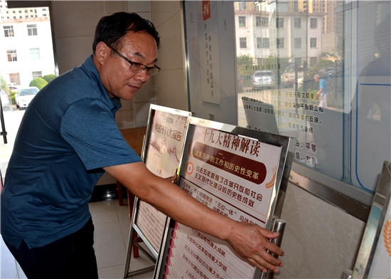 郝振華正在擺放黨建文化展板
