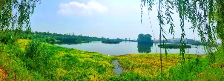 河水清明,蘆葦、香蒲、荷花、浮萍等水生植物繁密茂盛,鷺鷥起落,野鴨弄波,游魚戲水,風(fēng)光宜人。