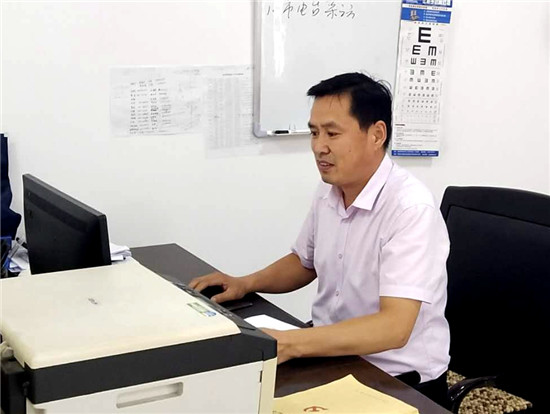 閆振濤正在篩查整理殘疾人矯正康復材料