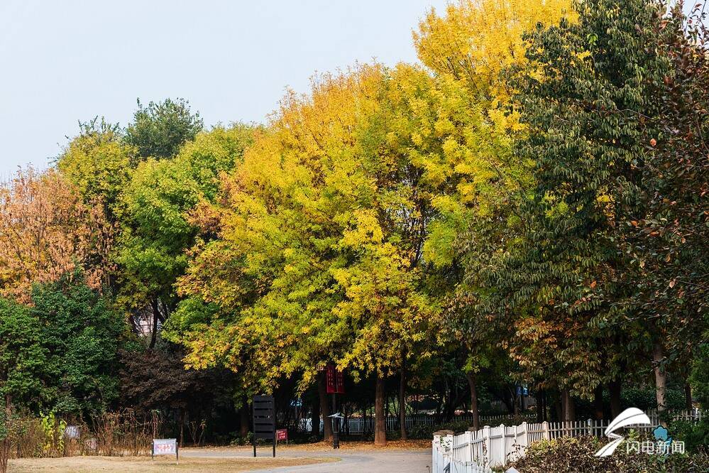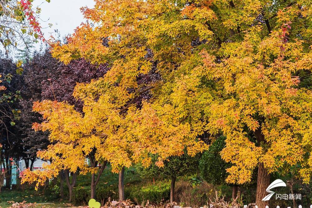 齊魯網·閃電新聞10月30日訊 馬上就要進入十一月的山東菏澤,依然是惠風和暢,景色迷人;加上霜降之后,街頭綠化樹開始換裝,仿佛一夜之間,一條條街道已經是鎏丹凝萃,姹紫嫣紅。