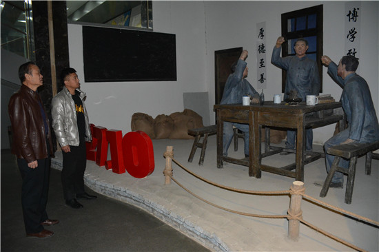幾名身著灰色制服的年輕人聚集在一個狹小逼仄的房間內,一人站立,兩人圍坐,三人神情嚴肅、目光炯炯有神,他們右手握拳高舉,莊嚴宣誓……這是菏澤市抗日紀念館菏澤英魂館第一單元“信仰之火”展覽中的一個場景。該場景復原了中共曹州支部成立時的情景,復原場景的外側懸掛著“1927.10”的紅色字樣。