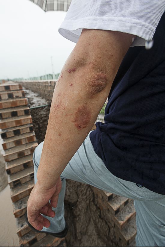 長(zhǎng)期的大的工作量和緊繃著的工作壓力,李彥朝同志患上了神經(jīng)性皮炎,有時(shí)候很癢起來(lái)只能靠安眠藥才能入睡,這是一處最讓他擔(dān)心的夾層墻工地,看到能抗擊這么大的雨他放心啦。
