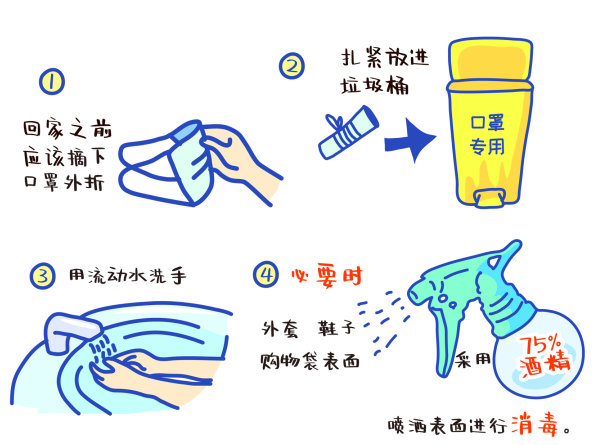 外出要攜帶備用口罩,存放在原包裝袋或干凈的存放袋中,避免擠壓變形,廢棄口罩歸為其他垃圾處理。