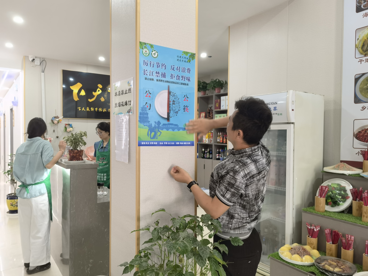 黨集市場監督管理所執法人員通過在轄區餐飲服務、人流較大的公共區域張貼宣傳彩頁、講解相關政策、法律法規對厲行節約、反對浪費,長江禁捕、拒食野味開展專項宣傳。同時倡導浪費可恥、堅持光盤行動,摒棄“野味滋補”的偽健康觀念,不食用野生動物、長江野生魚類,自覺遵守野生動物保護的法律法規。