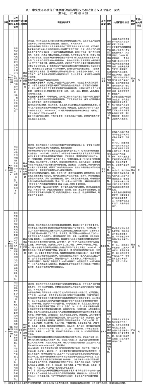 附件:中央生態環境保護督察群眾信訪舉報轉辦和邊督邊改公開情況一覽表(第六批)