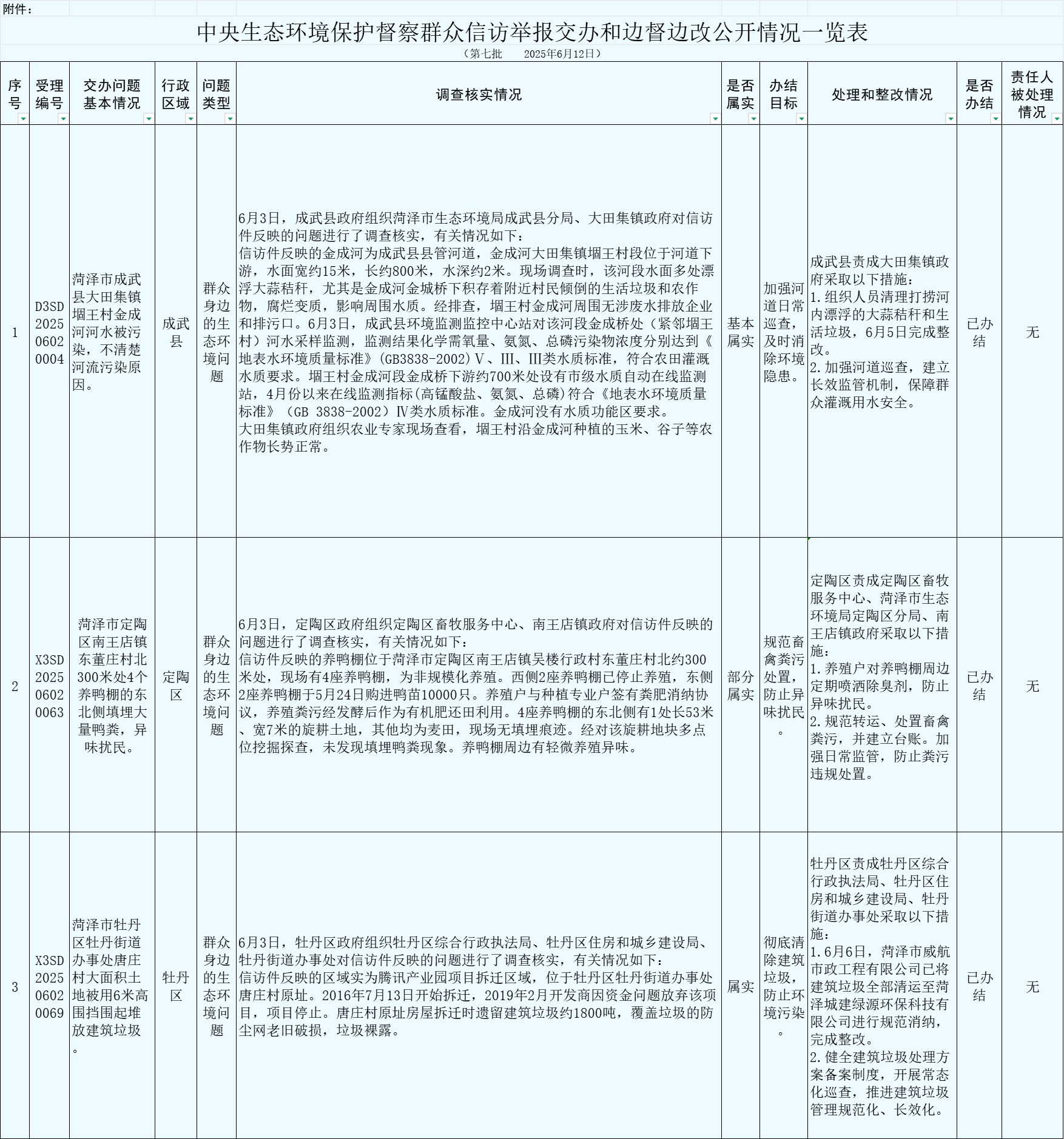 附件:中央生態(tài)環(huán)境保護(hù)督察群眾信訪舉報(bào)轉(zhuǎn)辦和邊督邊改公開情況一覽表(第七批)