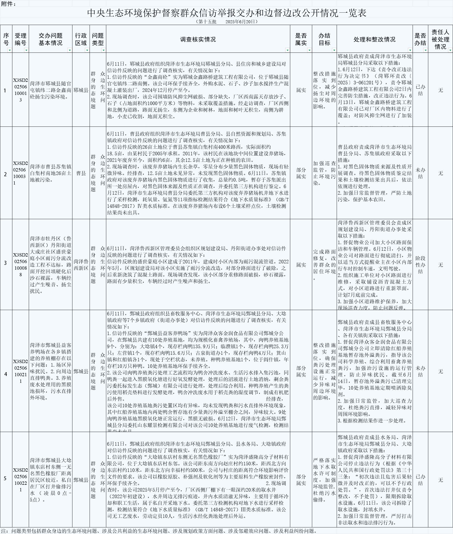 附件:中央生態環境保護督察群眾信訪舉報轉辦和邊督邊改公開情況一覽表(第十五批)